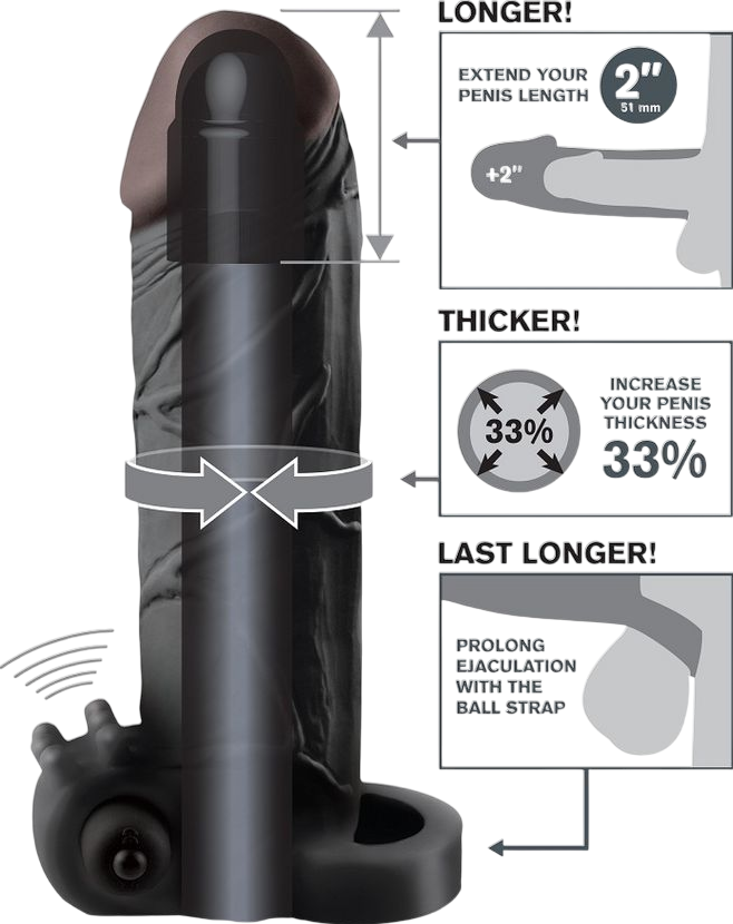 Δονούμενη Προέκταση Πέους Vibrating Real Feel 2 Extension Black
