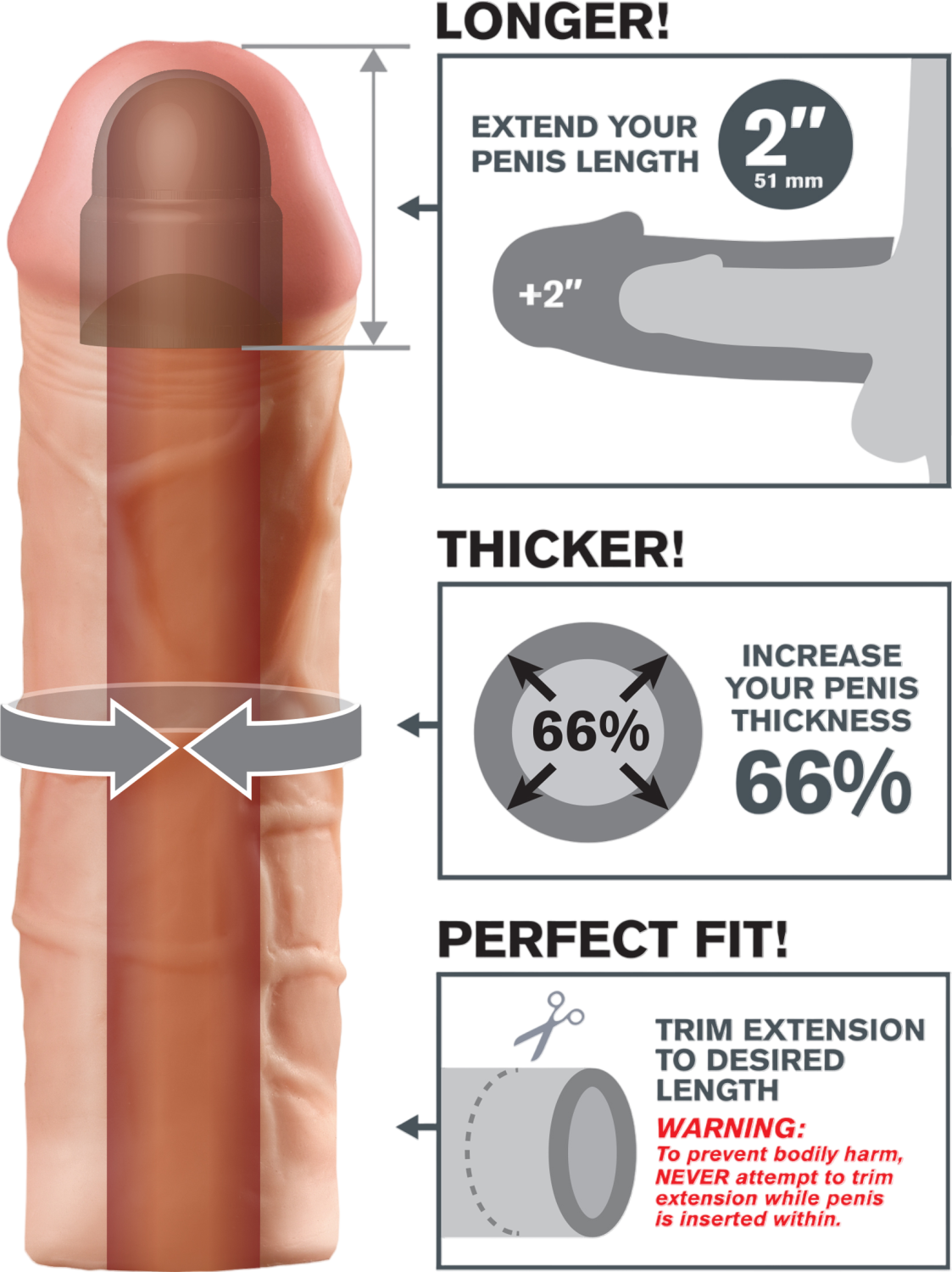 Αυτή η ρεαλιστική προέκταση είναι εξαιρετικά ελαστική για να εφαρμόζει στα περισσότερα μεγέθη διαμέτρου ενώ το μήκος της ρυθμίζεται τέλεια κόβοντας το περιττό κομμάτι με τη χρήση ενός καλού ψαλιδιού. Είναι όσο σφιχτή χρειάζεται για να σας βοηθήσει να αυξήσετε την διάρκεια σας ενώ το εξαιρετικά μαλακό της υλικό Fanta Flesh έχει την αίσθηση ενός πραγματικά δεύτερου δέρματος δίνοντάς σας το μήκος, την περιφέρεια και την αυτοπεποίθηση που χρειάζεστε για να την/τον ικανοποιήσετε πλήρως!