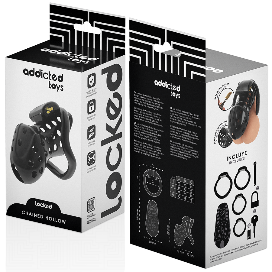 Το Locked Chained Hollow Penis Cage είναι το απόλυτο εργαλείο κυριαρχίας για όσους διψούν για αυστηρό έλεγχο και ολική υποταγή. Με μαύρο, τολμηρό design, γεμάτο αεραγωγούς και καμπύλες που θυμίζουν φίμωτρο από φαντασίωση, η εμφάνισή του και μόνο στέλνει το μήνυμα ότι... εδώ κανείς δεν αποφασίζει μόνος του.