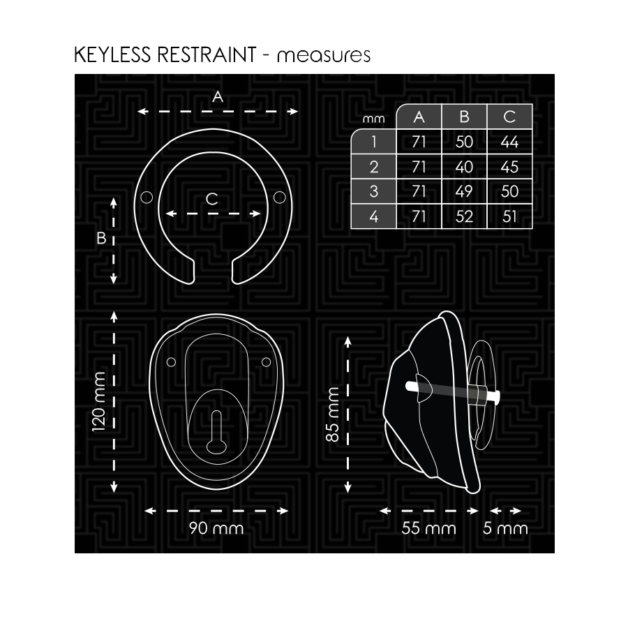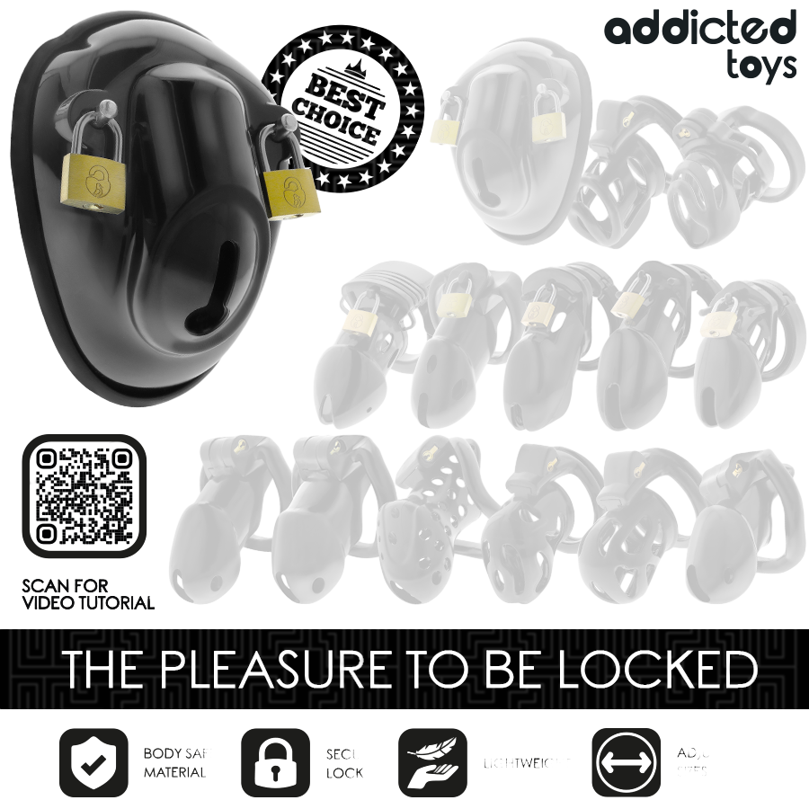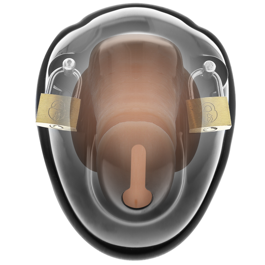 Το εσωτερικό του κλουβιού περιορίζει πλήρως την στύση, ενώ η εργονομική καμπύλη ακολουθεί φυσικά το σώμα. Ο αεραγωγός προσφέρει υγιεινή και διακριτική άνεση στην καθημερινότητα, ενώ τα διαφορετικά δαχτυλίδια και οι αποστάτες εξασφαλίζουν τέλεια εφαρμογή. Οι δύο μεταλλικές κλειδαριές του είναι έτοιμες να σφραγίσουν την αφοσίωση… μέχρι ο κάτοχος του κλειδιού να αποφασίσει αλλιώς.
