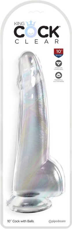Με τον εύκαμπτο άξονα, την λεία υφή και το διογκωμένο κεφαλάκι αυτό το ρεαλιστικό dildo με όρχεις της δημοφιλούς σειράς King Cock Clear θα προκαλέσει αναταραχή στις αισθήσεις σας. Είναι κατασκευασμένο από ποιοτικό TPE, ενώ η ισχυρή βεντούζα στήριξης κολλάει σε κάθε επίπεδη, λεία επιφάνεια εξασφαλίζοντας ελευθερία κινήσεων κατά την χρήση.
