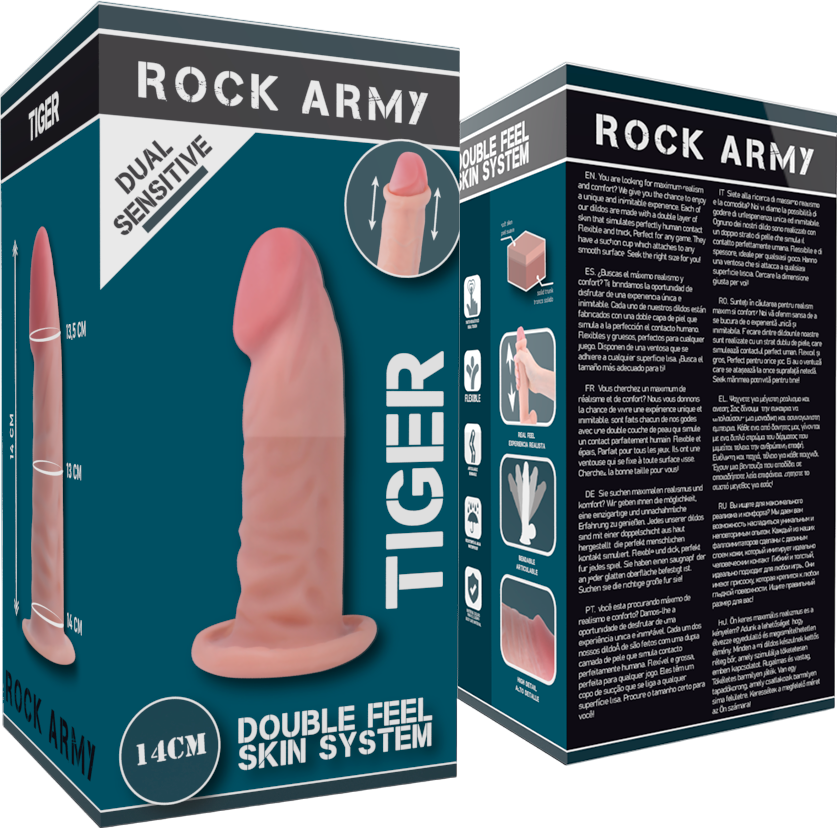 Το Tiger είναι ένα ρεαλιστικό dildo / ομοίωμα πέους από τη συλλογή Rock Army, σχεδιασμένο για να φτάσει την απόλαυση σας στο ανώτερο επίπεδο!
