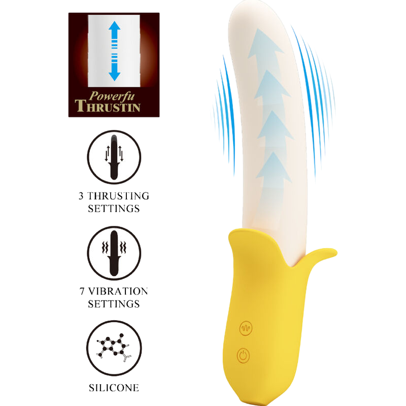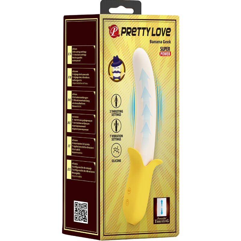 Ο δονητής Banana Geek της Pretty Love είναι ένα παιχνιδιάρικο και εξαιρετικά αποτελεσματικό εργαλείο απόλαυσης που συνδυάζει την πρωτότυπη εμφάνιση με την προηγμένη τεχνολογία. Σχεδιασμένος για να προσφέρει έντονη διέγερση, αυτός ο δονητής σε σχήμα μπανάνας είναι ιδανικός για όσους αναζητούν έναν συνδυασμό κολπικής και κλειτοριδικής ευχαρίστησης με έναν διασκεδαστικό τρόπο.