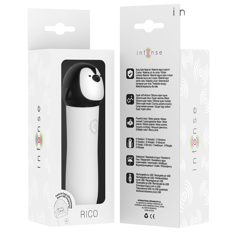 Ο Rico από την intense είναι ένας κομψός και διακριτικός δονητής κλειτορίδας, σχεδιασμένος για στοχευμένη εξωτερική διέγερση. Με έμπνευση από τη φιγούρα ενός πιγκουίνου, συνδυάζει εργονομία, ισχύ και ευχάριστο design, προσφέροντας μια παιχνιδιάρικη αλλά αποτελεσματική εμπειρία χρήσης.