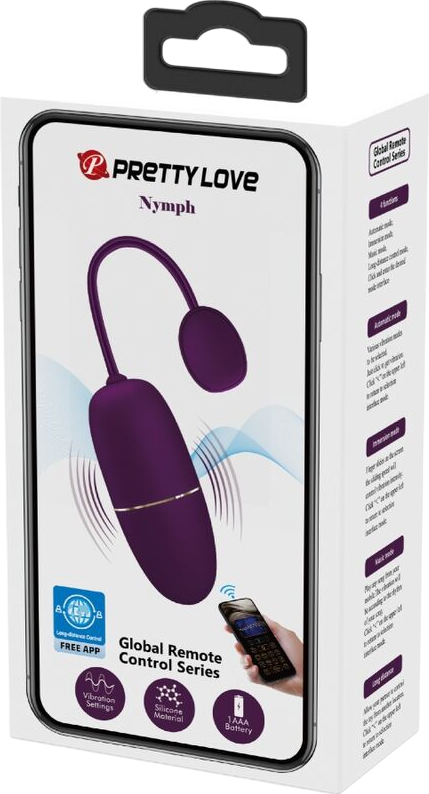 Μπορεί να ελεγχθεί εύκολα μέσω της δωρεάν εφαρμογής της Pretty Love για κινητά Android & iOS οπουδήποτε και παντού, ενώ οι 12 λειτουργίες μπορούν να ρυθμιστούν εύκολα με το πάτημα ενός κουμπιού στο τηλέφωνο για εκπληκτικές στιγμές απόλαυσης και συναρπαστικά παιχνίδια. Το αυγό καλύπτεται από μαλακή σιλικόνη που του χαρίζει απαλή, μεταξένια αίσθηση κατά την χρήση.