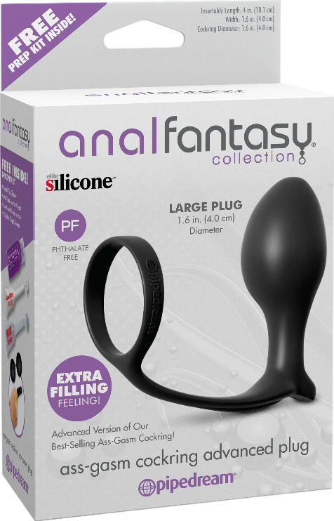 Δαχτυλίδι πέους και πρωκτική σφήνα ταυτόχρονα με το Ass-Gasm Cockring Plug της κορυφαίας σειράς πρωκτικών sex toys, Anal Fantasy με την υπογραφή της Pipedream.