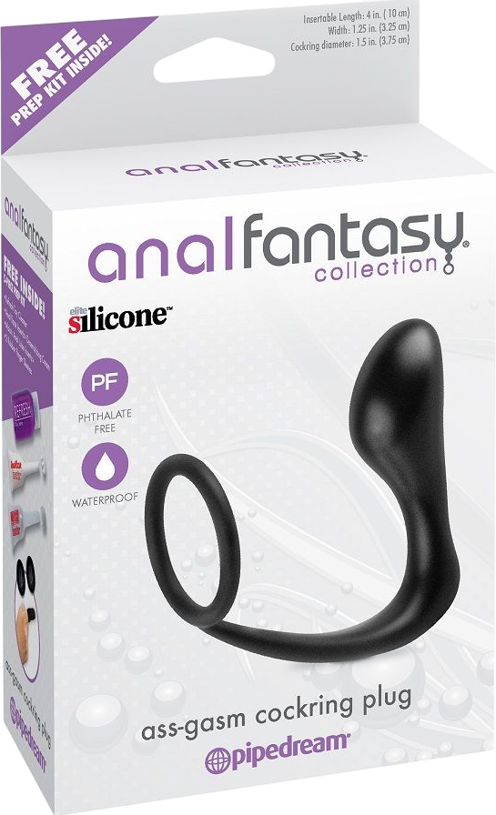 Δαχτυλίδι πέους και πρωκτική σφήνα ταυτόχρονα με το Ass-Gasm Cockring Plug της κορυφαίας σειράς πρωκτικών sex toys, Anal Fantasy με την υπογραφή της Pipedream.