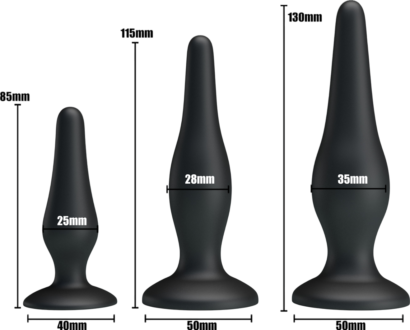 Αυτό το σετ αποτελείται από 3 πρωκτικές σφήνες σιλικόνης υψηλής ποιότητας και τέλειου μεγέθους ώστε να ξεκινήσετε σταδιακά από το μικρότερο στο μεγαλύτερο. Τολμάτε;