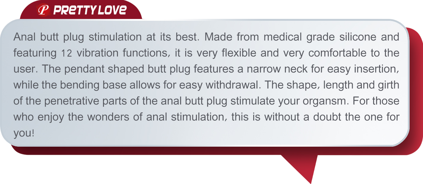 Η πρωκτική διέγερση στα καλύτερά της! Κατασκευασμένη από σιλικόνη ιατρικού βαθμού και με 12 προγράμματα δόνησης αυτή η επαναφορτιζόμενη πρωκτική σφήνα της Pretty Love θα σας ενθουσιάσει.