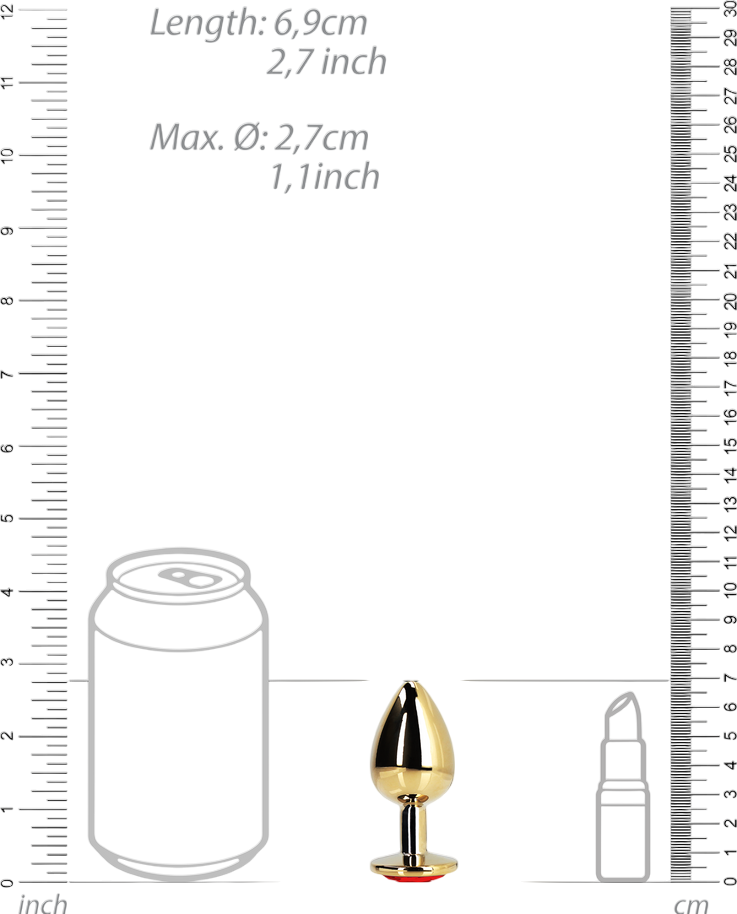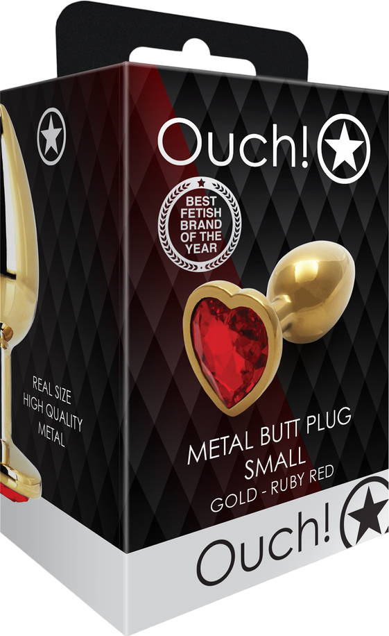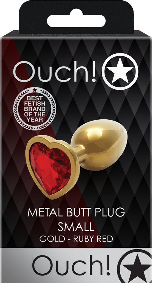 Σφήνα με Κόσμημα Heart Gem Butt Plug Small Gold/ruby Red 6,9 εκ.