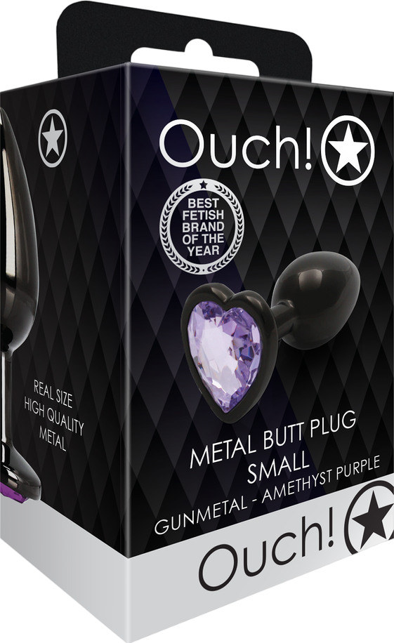 Μεταλλική Σφήνα με Κόσμημα Heart Gem Butt Plug Small Gunmetal/amethyst Purple 6,9 εκ.