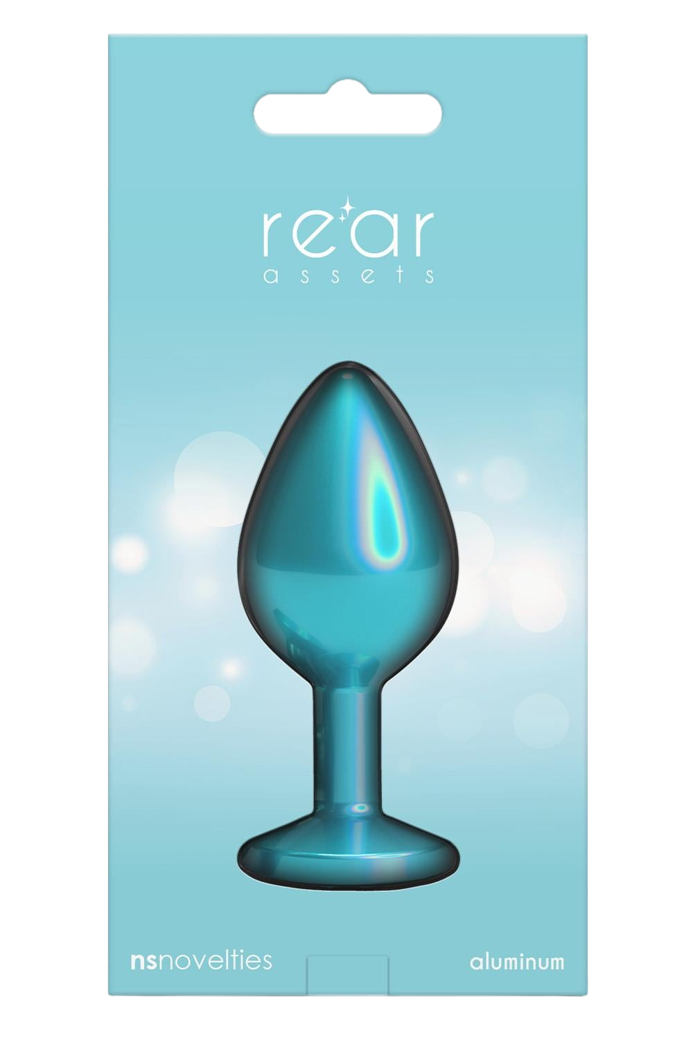 Η Rear Assets Iridescent Teal σε μέγεθος Medium είναι ένα εντυπωσιακό πρωκτικό κόσμημα που συνδυάζει την υψηλή αισθητική με μια μοναδική αίσθηση ικανοποίησης. Κατασκευασμένη από ελαφρύ αλουμίνιο με ιριδίζουσα teal επικάλυψη, αυτό το plug αντανακλά το φως με έναν μαγευτικό τρόπο, προσθέτοντας μια νότα πολυτέλειας και οπτικού ενθουσιασμού στις προσωπικές σας στιγμές. Η λεία, μεταλλική του επιφάνεια προσφέρει μια ξεχωριστή αίσθηση θερμοκρασίας, καθώς μπορεί να κρυώσει ή να ζεσταθεί ανάλογα με τις επιθυμίες σας, απογειώνοντας τις αισθήσεις σας.