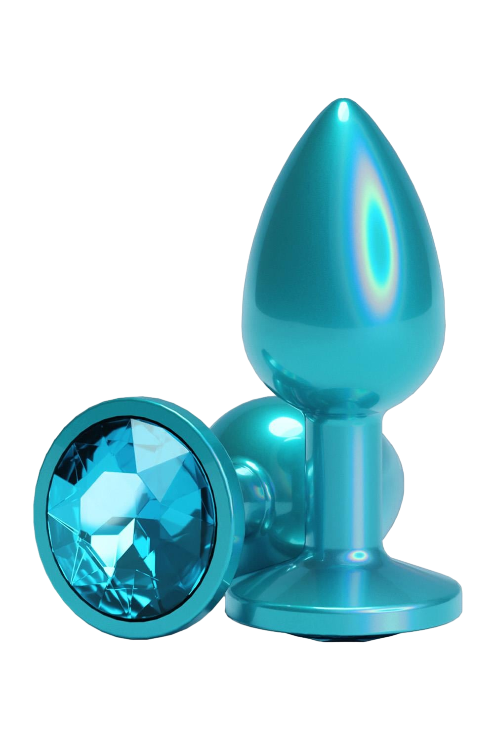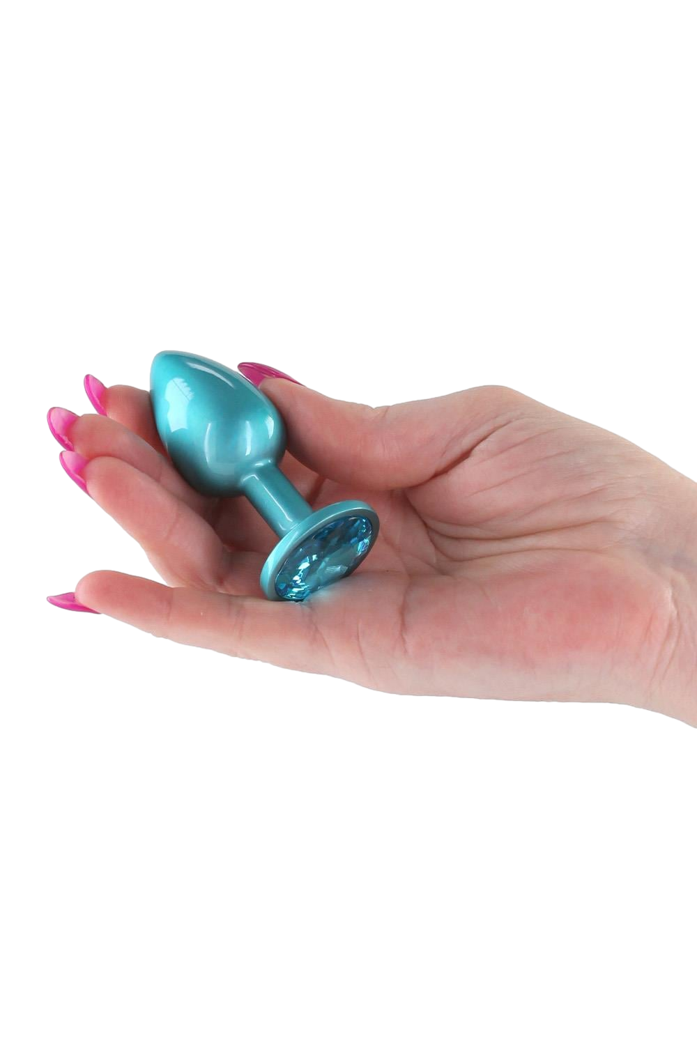Ο σχεδιασμός του είναι ειδικά μελετημένος για να εξασφαλίζει εύκολη και άνετη εισαγωγή, χάρη στην κωνική του κορυφή και το στενό λαιμό που καταλήγει σε μια σταθερή βάση. Η βάση αυτή είναι διακοσμημένη με έναν λαμπερό κρύσταλλο στην απόχρωση του teal, προσφέροντας ασφάλεια κατά τη χρήση αλλά και ένα εξαιρετικό αισθητικό αποτέλεσμα. Είναι ένα αξεσουάρ που απευθύνεται σε όσους αναζητούν την ποιότητα και την κομψότητα στις προσωπικές τους στιγμές, είτε σε solo παιχνίδι είτε με σύντροφο.