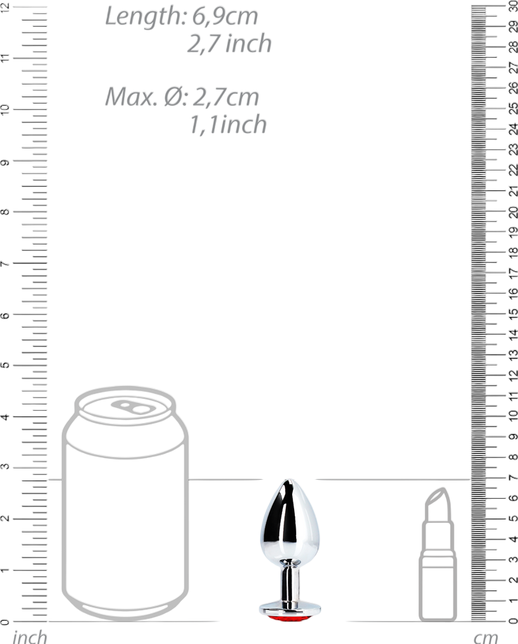Σφήνα με Κόσμημα Round Gem Butt Plug Small Silver/ruby Red 6,9 εκ.