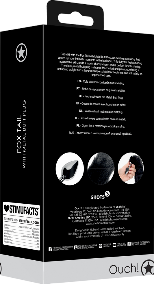 Η χνουδωτή ουρά αγκαλιάζει το δέρμα σας, προσφέροντας μια αίσθηση ζεστασιάς και παιχνιδιού, ιδανική για ρόλους που θα αναστατώσουν τις αισθήσεις σας. Η κομψή μεταλλική σφήνα είναι σχεδιασμένη για άνεση και ευχαρίστηση, με το ιδανικό βάρος και το κωνικό της σχήμα να κάνουν την εισαγωγή εύκολη και απολαυστική, είτε είστε αρχάριος είτε πιο έμπειρος χρήστης.
