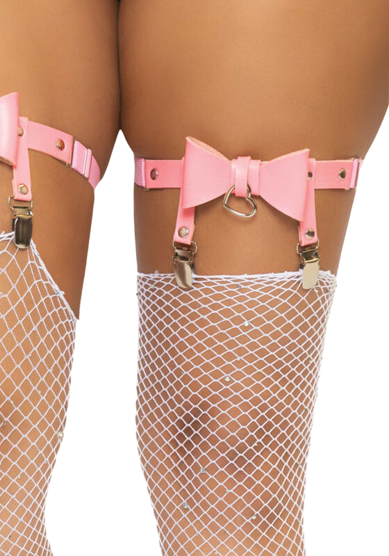 Vegan δερμάτινη καλτσοδέτα με φιογκάκι στον μηρό με ρυθμιζόμενους ελαστικούς ιμάντες και χαριτωμένο κρίκο καρδιάς.