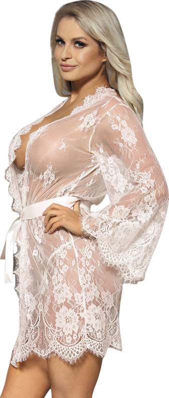 Mini Ρομπάκι Flared Sleeves Lace Peignoir White