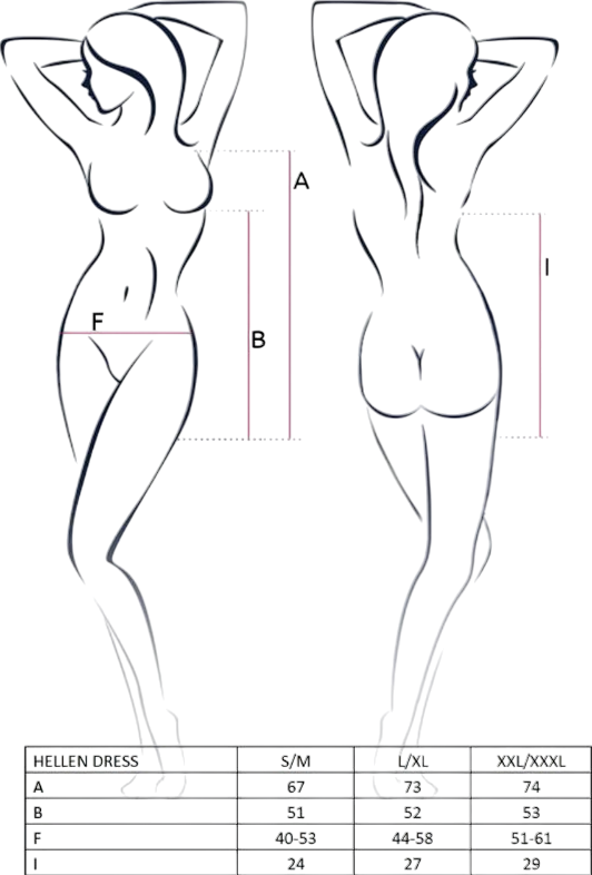 Το Hellen είναι ένα καταπληκτικό και απίστευτα σέξι σετ εσωρούχων που αποτελείται από σέξι φόρεμα και στρίνγκ που σχεδιάστηκε και κατασκευάστηκε από τη διάσημη μάρκα εσωρούχων Passion.