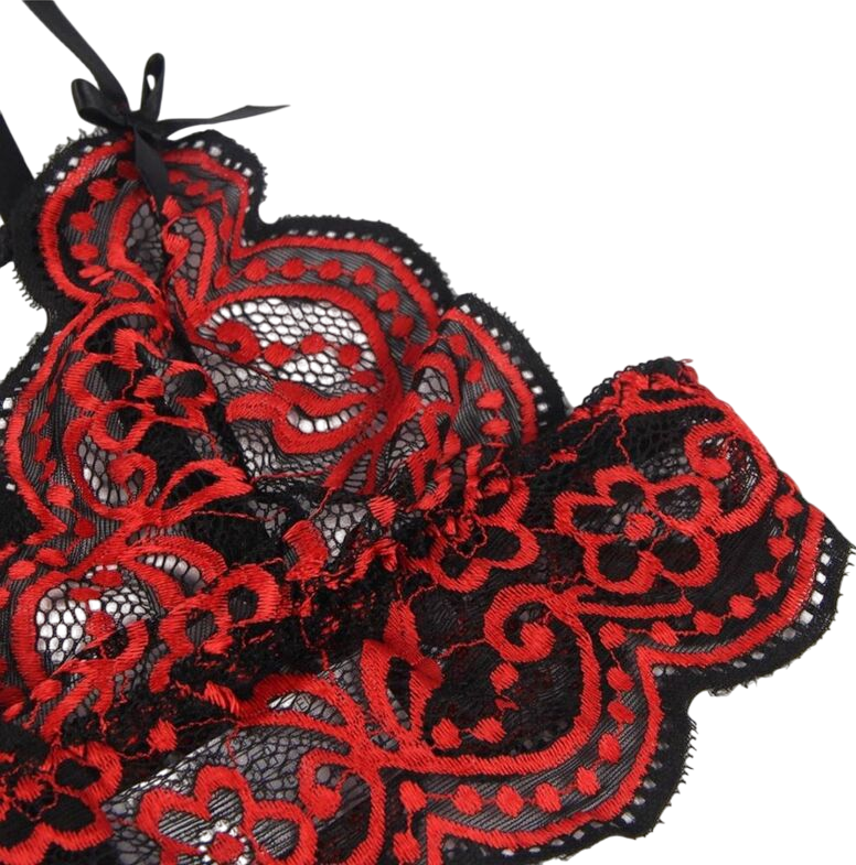 - Αποτελείται από δαντελένιο τοπ και ασορτί thong