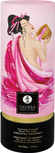 Οι κρύσταλλοι του αλατιού της Νεκράς Θάλασσας, Shunga Aphrodisia Bath Salts θα εντείνουν την τελετουργία του μπάνιου σας, χρωματίζοντας απαλά το νερό και τυλίγοντάς σας με τον βελούδινο αφρό του. Το μοναδικό του άρωμα θα σας χαρίσει χαλάρωση φέρνοντας την ηρεμιστική επίδραση της θάλασσας στο μπάνιο σας. Μια αναζωογονητική εμπειρία σας περιμένει, μόνη ή ως ζευγάρι, για να δημιουργήσετε αισθησιακές στιγμές χαλάρωσης ή έντονης ευτυχίας...