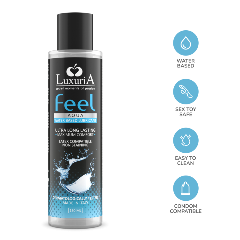 Το Luxuria Feel Aqua Water Based, είναι το λιπαντικό της επόμενης γενιάς, αποκλειστικά κατασκευασμένο στο να αναπληρώνει την φυσική λίπανση και να διευκολύνει την διείσδυση!