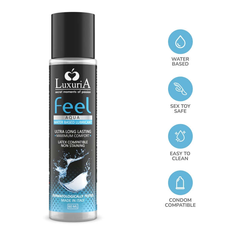 Το Luxuria Feel Aqua Water Based, είναι το λιπαντικό της επόμενης γενιάς, αποκλειστικά κατασκευασμένο στο να αναπληρώνει την φυσική λίπανση και να διευκολύνει την διείσδυση!