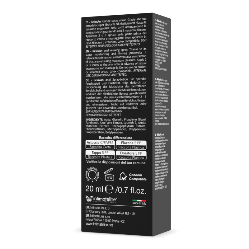 Το RelaxAn είναι ένα σπρέι πρωκτικής λίπανσις που χαλαρώνει τους μυς του πρωκτού και εγγυάται τη μέγιστη ευχαρίστηση κατά τη διείσδυση.
