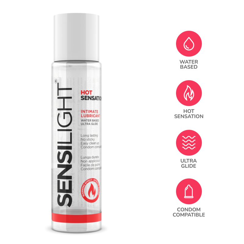 Το Sensilight Hot Sensation είναι ένα ιδιαίτερα αποτελεσματικό λιπαντικό νερού ικανό να προκαλέσει μια γλυκιά ζεστή αίσθηση ταυτόχρονα με την λιπαντική του δράση. Φροντίζει και παράλληλα ενυδατώνει τις ευαίσθητες περιοχές του σώματος, δεν λερώνει και ξεπλένεται εύκολα.