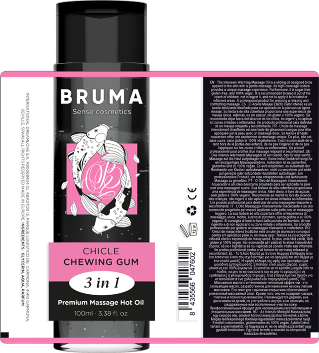 Λάδι Μασάζ με Γεύση Τσιχλόφουσκα Premium Massage Hot Oil Chewing Gum 3 In 1 100 ml