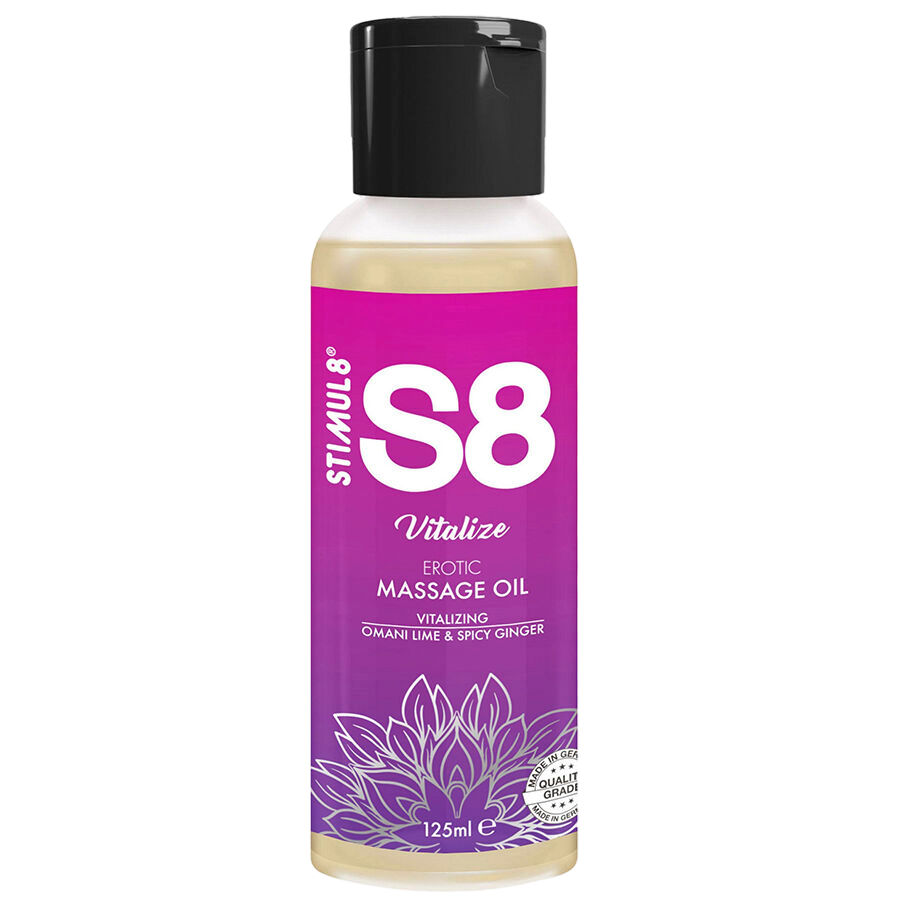 Το Stimul8 S8 Vitalize Lime Massage Oil είναι ένα αναζωογονητικό λάδι μασάζ που συνδυάζει αρωματικές νότες lime και ginger με φυσικά έλαια υψηλής ποιότητας. Ιδανικό για στιγμές χαλάρωσης και περιποίησης, προσφέρει απαλή υφή και αίσθηση φρεσκάδας στο δέρμα.