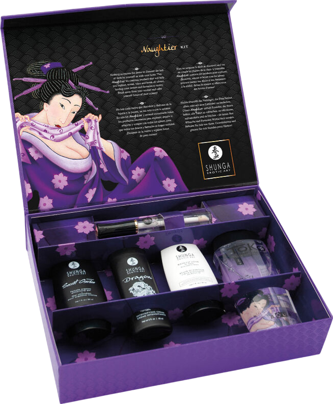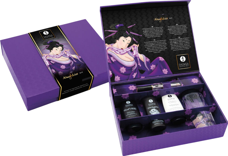 Με διαφορά το πιο συναρπαστικό σετ αισθησιακών καλλυντικών της αγοράς, το Shunga Naughter Kit σας βυθίζει σε μία άκρως ερωτική ατμόσφαιρα με την πρώτη ματιά. Αποτελεί ένα εξαιρετικό δώρο και έναν υπέροχο τρόπο για να εξερευνήσετε τον κόσμο των αισθήσεων. Περιπλανηθείτε στο μαγικό κόσμο της Shunga και δείτε τις φαντασιώσεις σας να ζωντανεύουν!