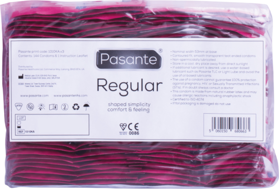 Τα προφυλακτικά Regular της Pasante διατίθενται με νέο εργονομικό και ελαφρώς κωνικό σχήμα για μεγαλύτερη άνεση κατά την σεξουαλική επαφή.